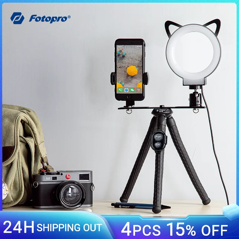 Fotopro Selfie Ring Light Photography Led Rim Of Lamp With Mini Flexible Sponge Octopus Tripod For Live Video Streaming L8-black