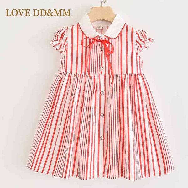 girls clothing dresses girl fashion lapel vertical striped short-sleeved dress for girl 3-8 years 210715, Red;yellow