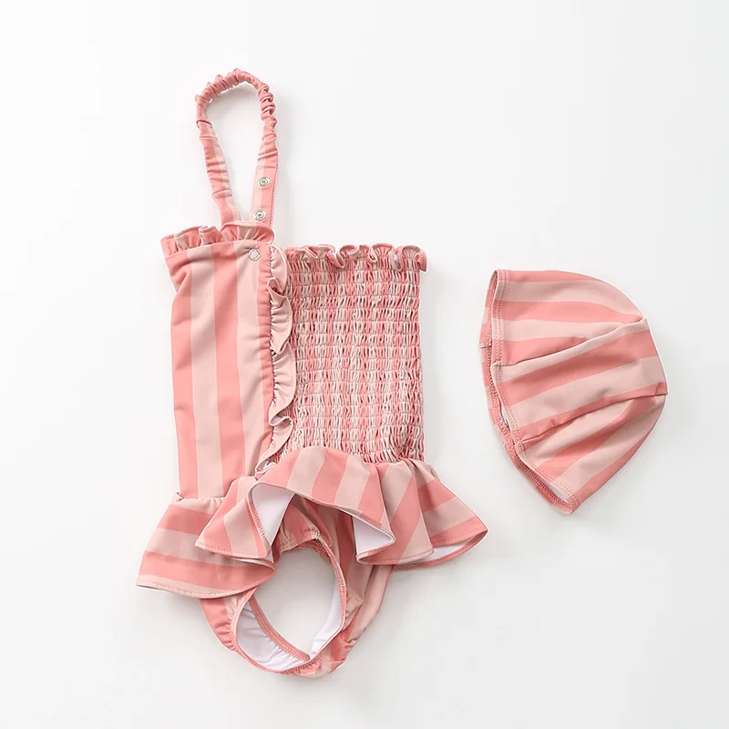 Купальник для маленьких девочек, купальник в полоску с розовыми оборками для маленьких принцесс, летний наряд для детей