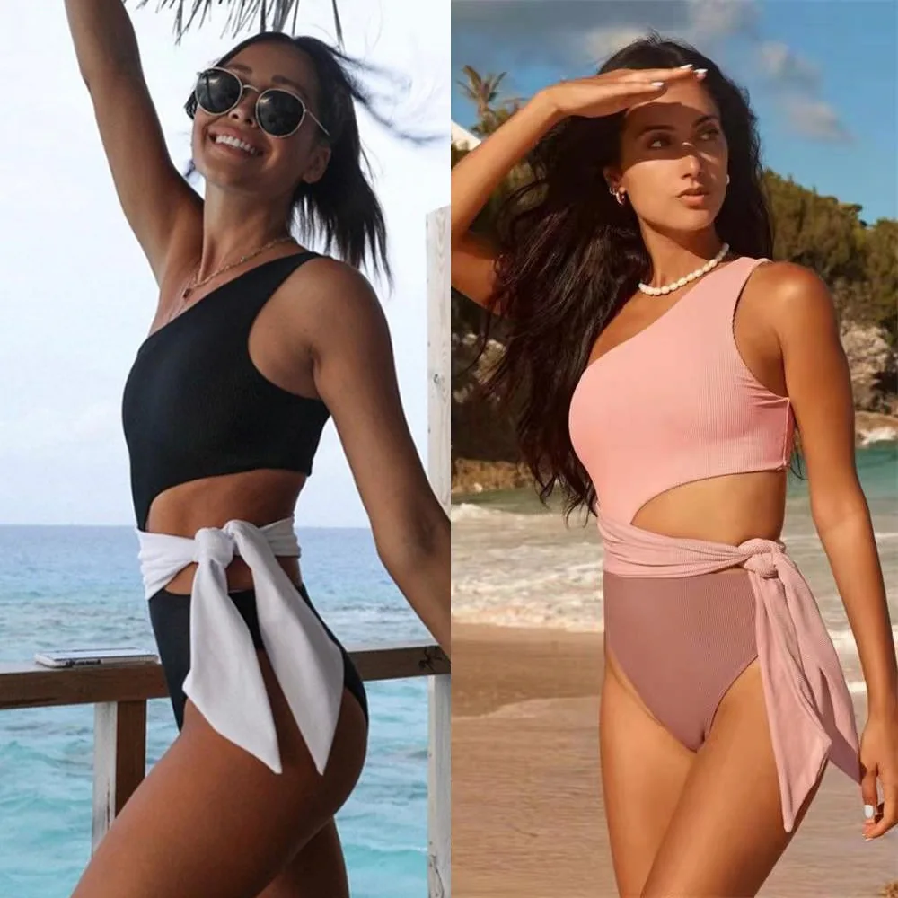 Купальник на одно плечо в рубчик, цельный женский купальный костюм с ремнем и вставками, купальный костюм с мягкими чашечками, Бразильская п...