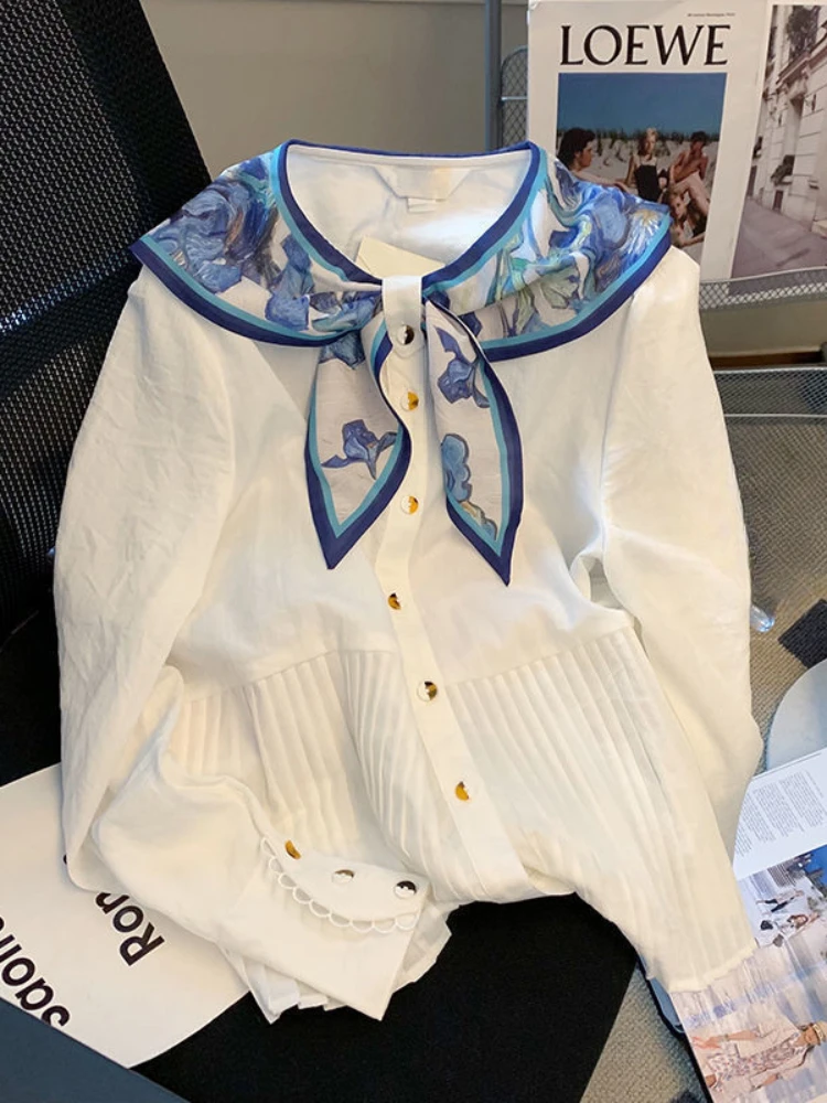 Retro Blouses Shirt Patchwork Women's Clothing Spring Autumn 2023 New Tees Loose Shirt Long Sleeve Tops Victorian Blouse White