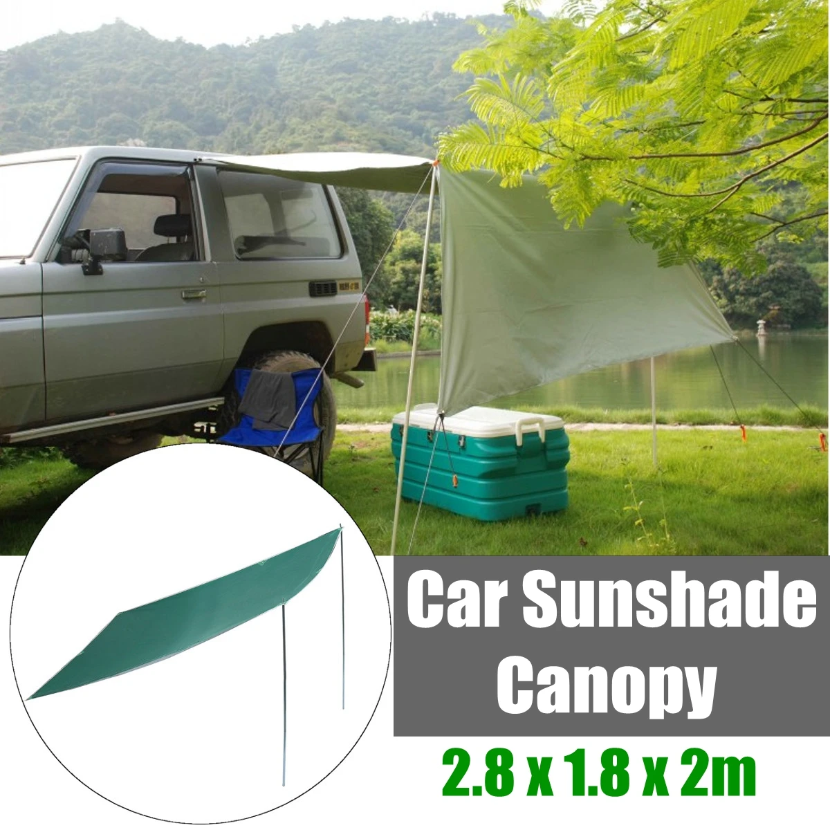 2.8 x 1.8m Sunshade Tent Car Outdoor Folding Waterproof Camping Roof Top Tent Folding Anti-UV Car Canopy Sun Shelter