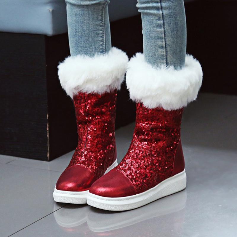 Brand Glitter Snow Boots Women Plush Fur Thicken Warm Winter Booties Female Bling Bling Motorcycle Botas cotton Botas, Black