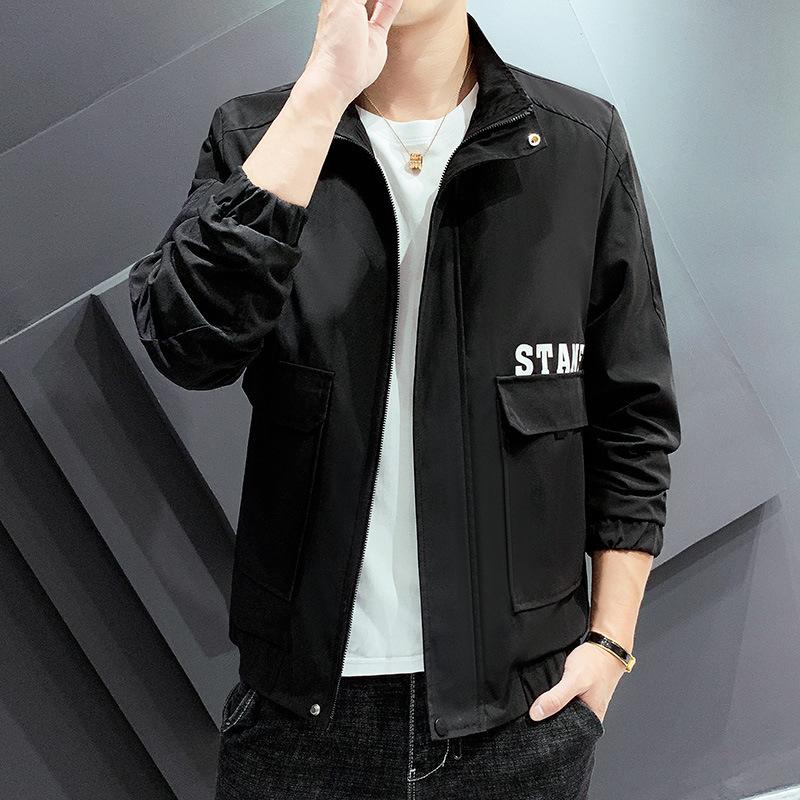 Куртка Осенняя куртка Tooling Мужская в стиле Гонконга Студенческая тенденция Повседневная верхняя часть Мужская 4XL чёрный