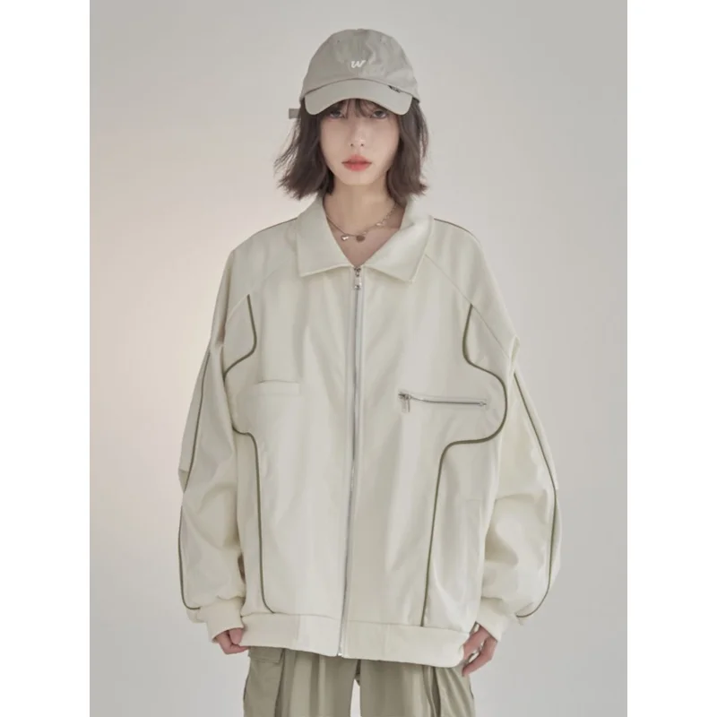 Куртка-бомбер женская кожаная на молнии, с карманами и длинным рукавом