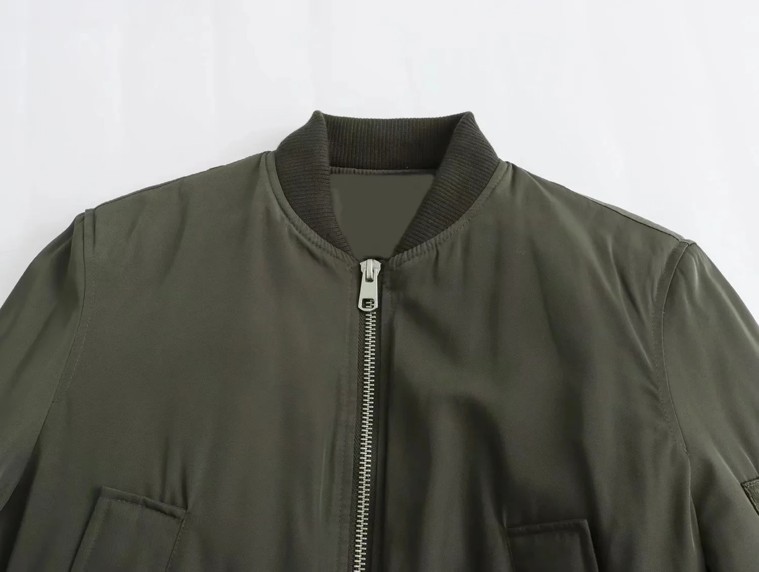 Куртка-бомбер женская осенняя с круглым вырезом и длинным рукавом, на молнии