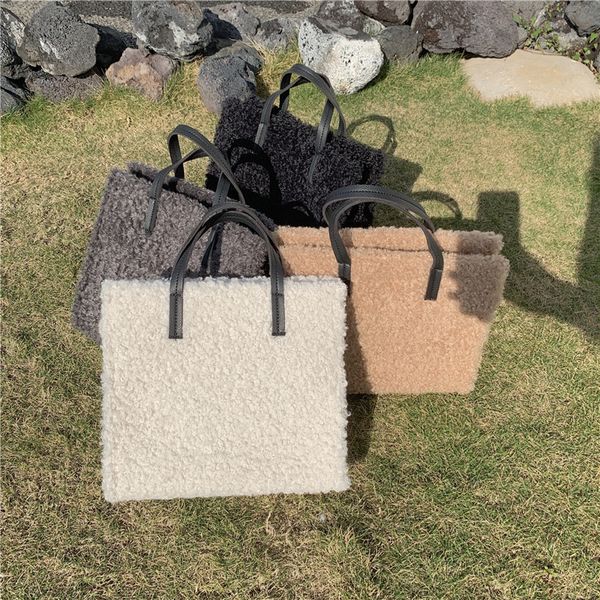 fashion lambswool tote women shoulder bag casual soft plush women's designer handbag travel crossbody messenger bag female purse c0225