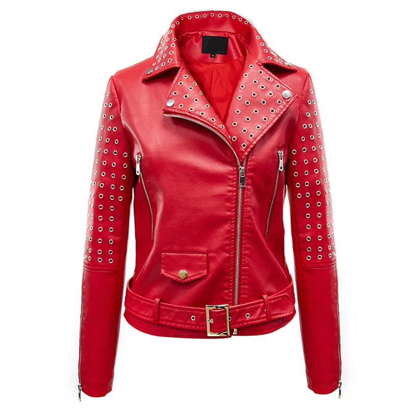 Куртка женская демисезонная из искусственной кожи, приталенная, красная, Черная