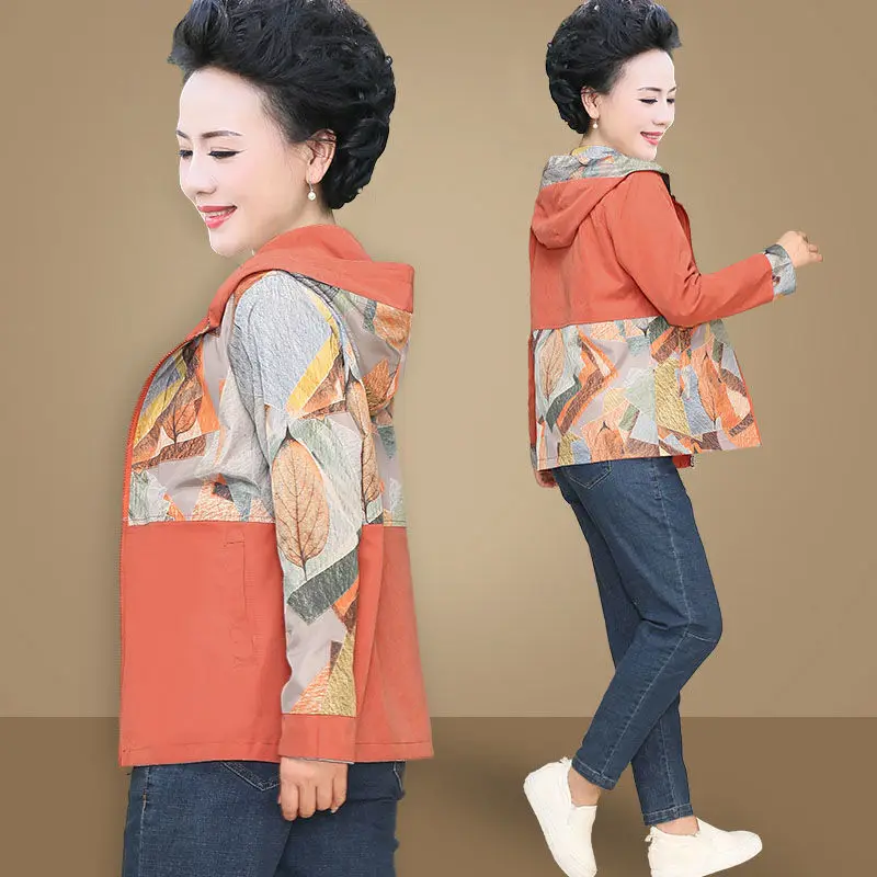 Куртка женская демисезонная свободная на молнии с капюшоном и принтом, C625