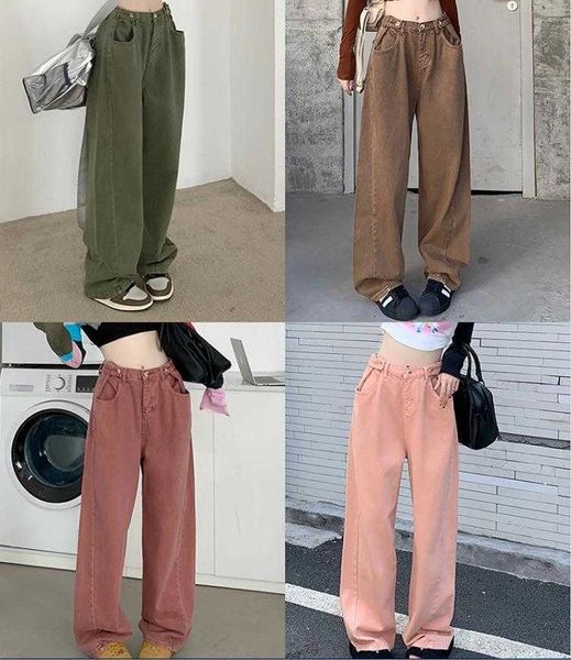 straight jeans womens autumn adjustable high waist loose and slimming all match, Blue