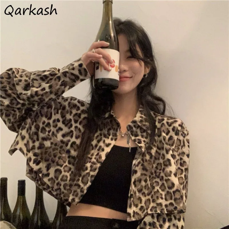Куртка женская с леопардовым принтом, укороченный пиджак с длинным рукавом, модная винтажная уличная одежда, весна-лето