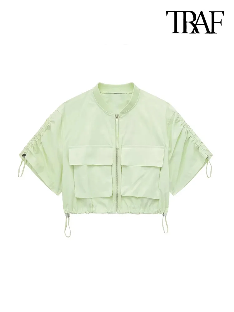 Куртка женская укороченная на молнии, с коротким рукавом и карманами