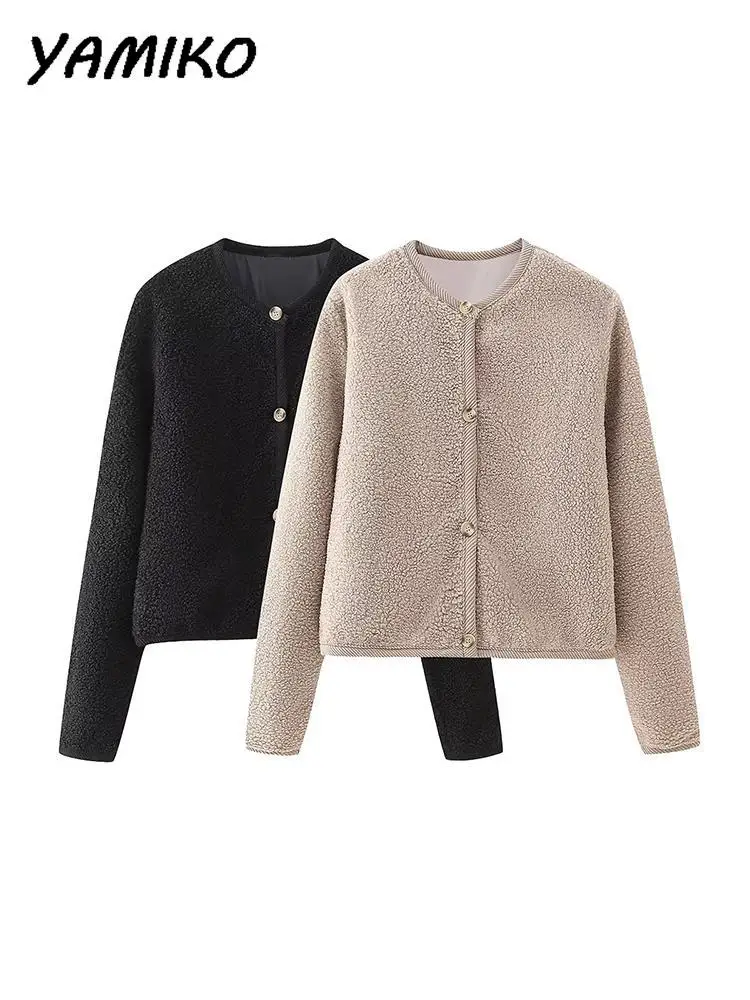 Куртка женская флисовая однобортная с круглым вырезом и длинным рукавом