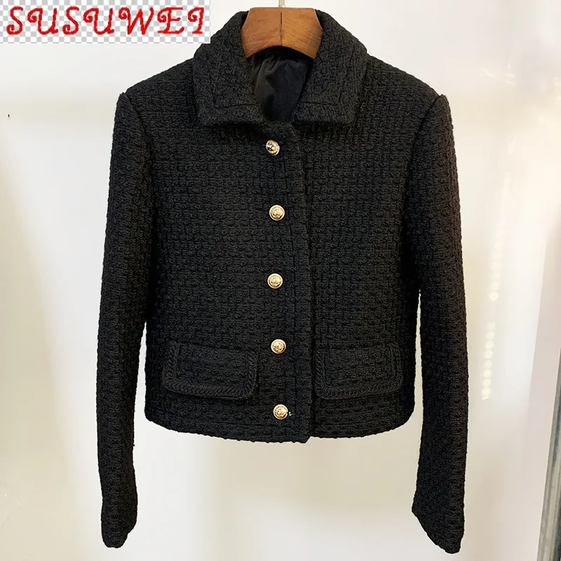 Куртка женская шерстяная твидовая, с длинным рукавом и отложным воротником, на осень/зиму