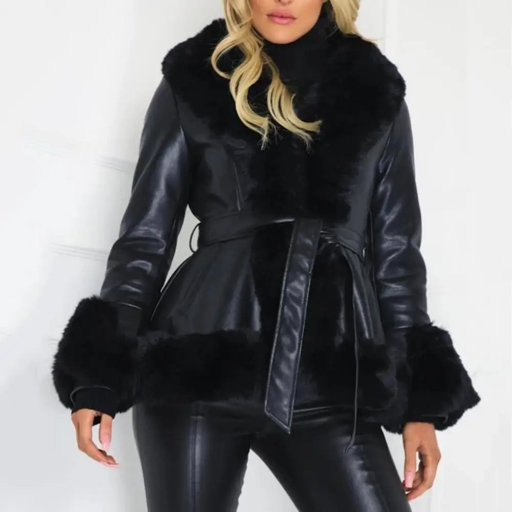 Куртка зимняя непродуваемая с воротником из искусственного меха кролика и длинным рукавом
