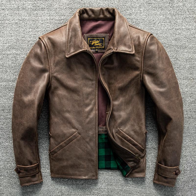 Куртка из натуральной кожи из коровьей кожи первого слоя для мужчин, короткая, приталенная, осенне-зимняя короткая куртка 4XL