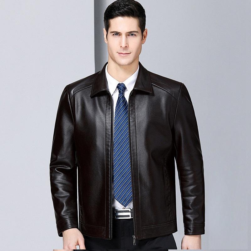 Куртка из натуральной кожи мужская весенне-осенняя из овчины модная повседневная кожаная куртка среднего возраста плюс утолщенная бархатная куртка 195