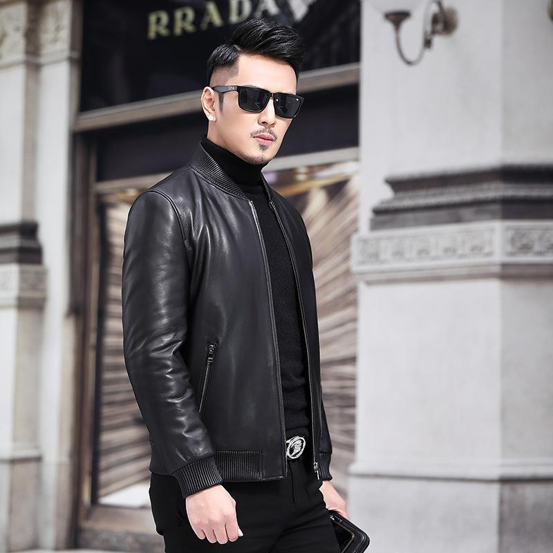 Куртка из натуральной кожи, мужская новая овчина, бесшовный пуховик, короткая осенне-зимняя меховая куртка 4XL чёрный