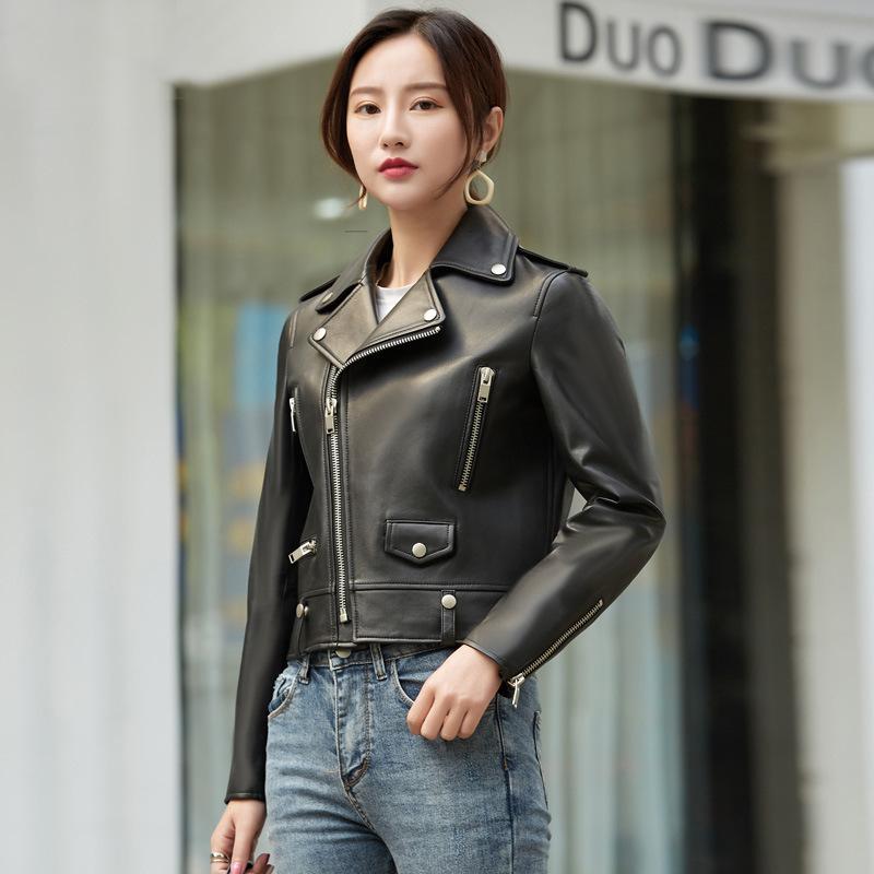 Куртка из натуральной овчины, женская, осенняя, новая, короткая, повседневная, тонкая, кожаная, мотоциклетная куртка 3XL