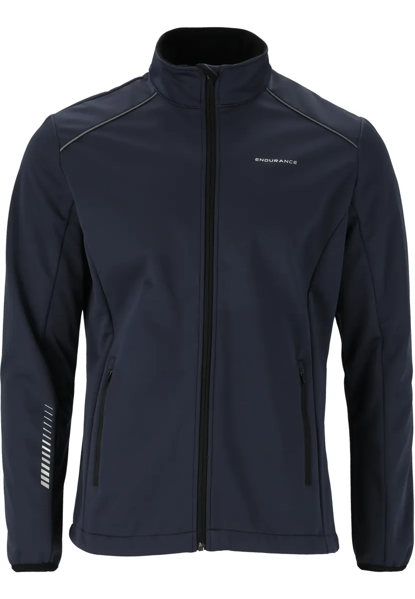 Спортивная мужская куртка из софтшелла от ENDURANCE Материал: полиэстер с мембраной ТПУ. Дышащая, водонепроницаемая и ветрозащитная Светоотражающие детали обеспечивают видимость в темноте Идеально подходит для таких видов спорта, как бег и скандинавская ходьба.