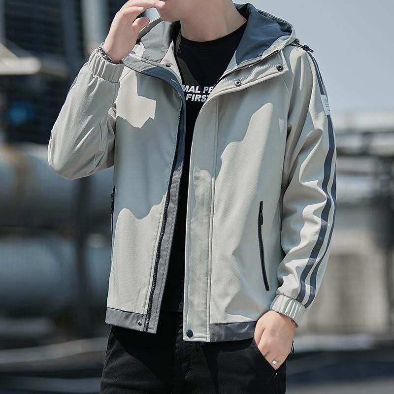 Куртка мужская весна и осень с капюшоном мужская куртка корейский стиль модная тонкая студенческая рабочая одежда верхняя повседневная ветровка для мужчин L