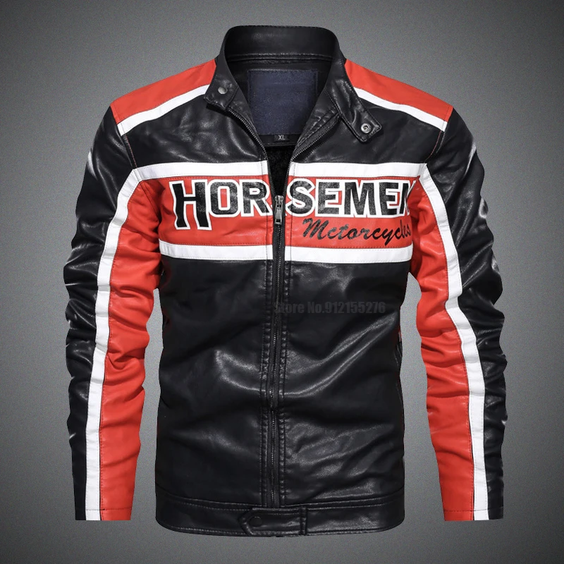 Куртка мужская демисезонная из искусственной кожи на флисе с воротником-стойкой