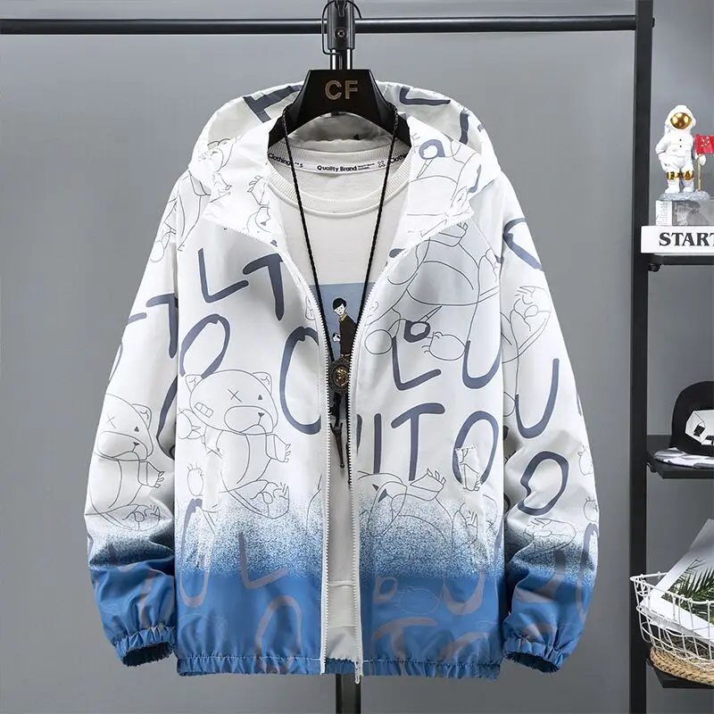 Куртка мужская демисезонная на молнии, с капюшоном и надписью