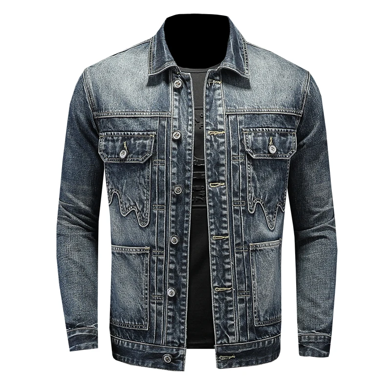 Куртка мужская джинсовая однобортная, винтажная верхняя одежда, весна-осень