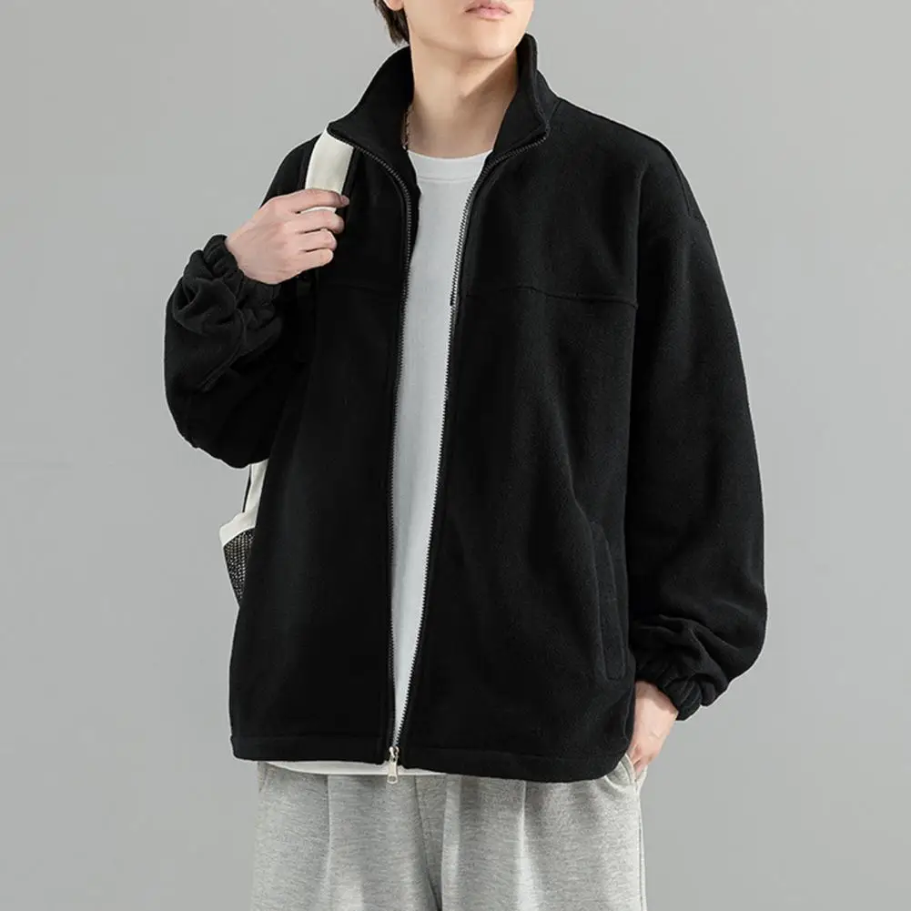 Куртка мужская зимняя однотонная с воротником-стойкой и боковыми карманами