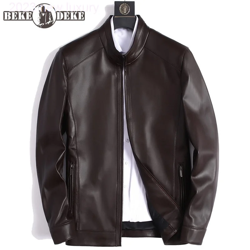 Куртка мужская из натуральной кожи, на молнии, с воротником-стойкой