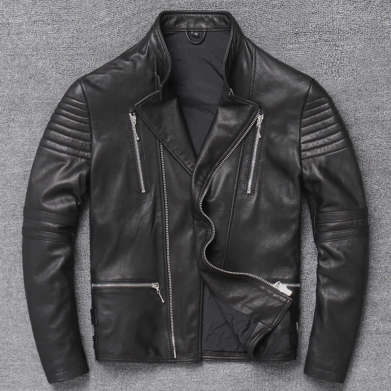 Куртка мужская из натуральной овечьей кожи, теплая Байкерская верхняя одежда