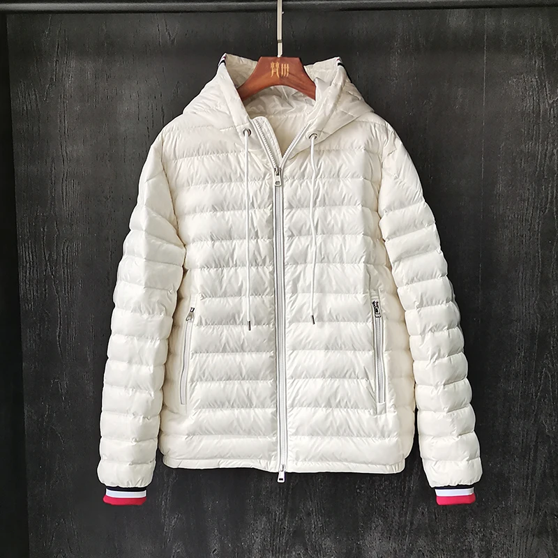 2021 new winter short female ultra light 90% white down warm parka with hood long sleeve jacket outerwear kinu, Black