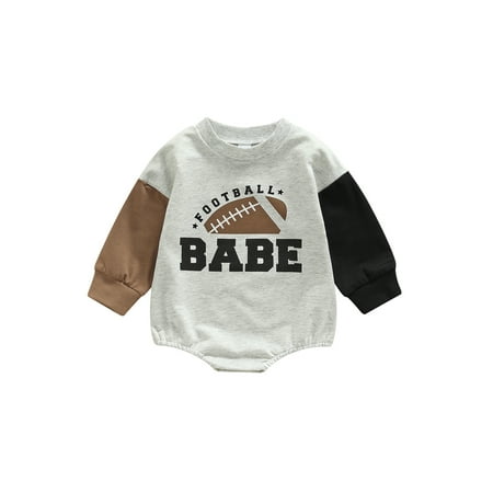Jkerther Baby Football Sweatshirt Romper Letters Print Patchwork Long Sleeve One Piece Fall Clothes