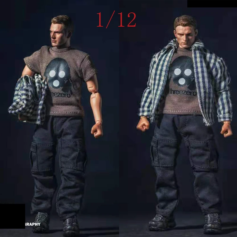 1/12 Scale male soldiers clothes plaid coat coffee print T black overalls suit fit 6'' action figure body