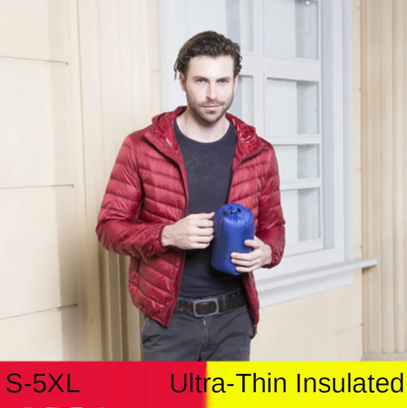 Куртка-пуховик Мужская Легкая, с воротником-стойкой и капюшоном, ультратонкая, куртка для людей среднего возраста