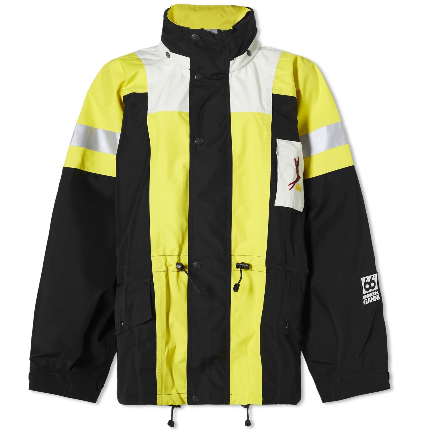 Коллаборация 66° North X Ganni Askja создали функциональную и яркую коллекцию. Куртка-рубашка из ткани GORE-TEX WINDSTOPPER защищает от ветра и дождя, а складной капюшон и пояс на шнурке обеспечивают дополнительную защиту.