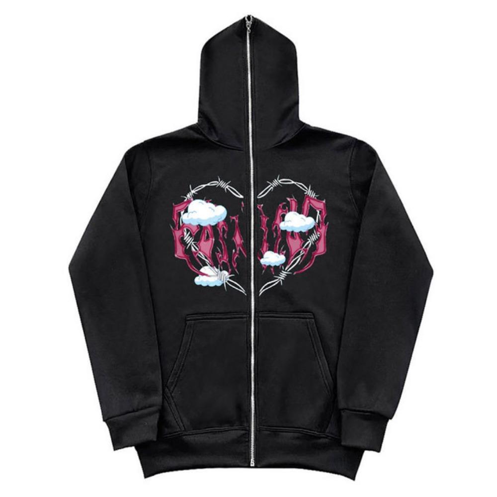 Куртка с капюшоном в стиле ретро Харадзюку, уличная мода Y2K, толстовки со скелетом, готическая черная толстовка на молнии большого размера XXXL