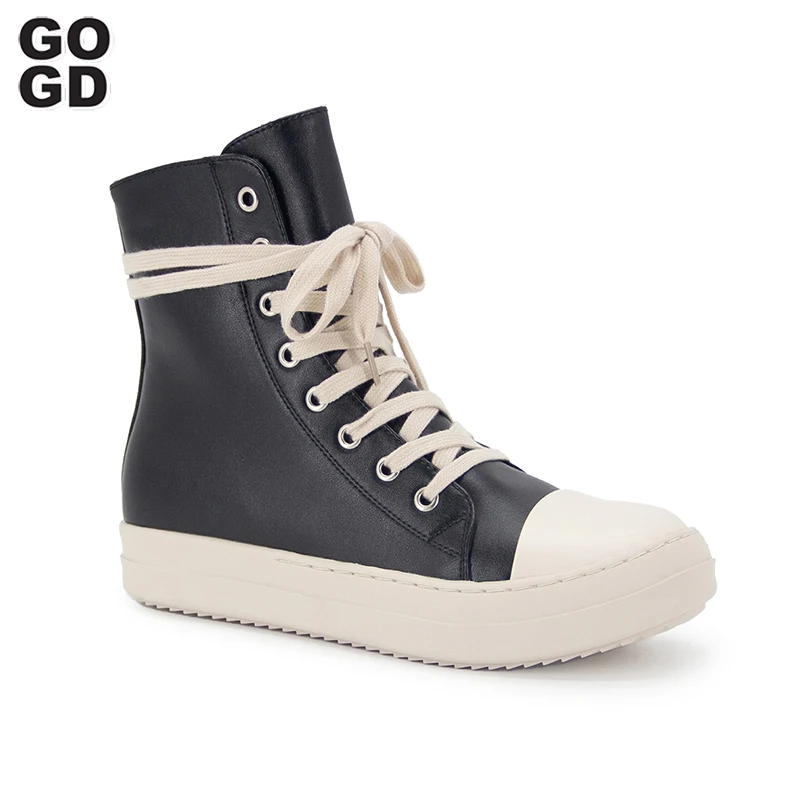 GOGD Brand Fashion Women's New 2023 Ankle Boots Pu Leather Platform Zipper Lace-Up Walking Shoes College Student Stree Style