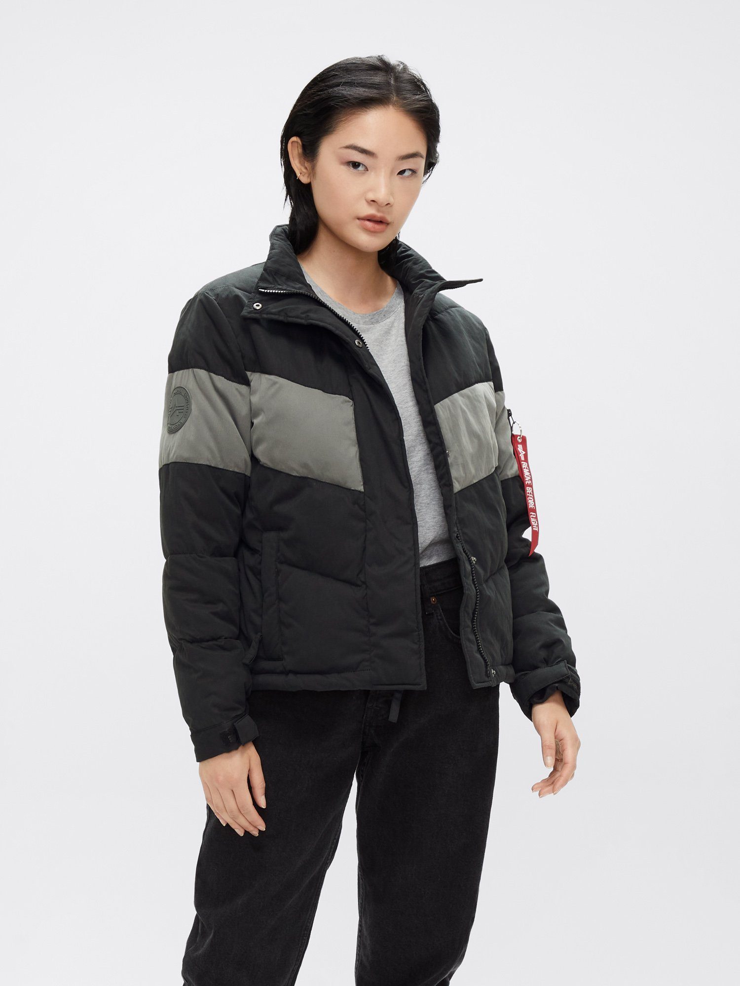 Стеганая зимняя куртка изготовлена из качественной смеси полиэстера и нейлона, а регулируемые манжеты обеспечивают плотную и теплую посадку. Короткий "дутый" силуэт с контрастной шевронной отделкой будет выделяться среди серости в зимние дни. Детали: Воротник-стойка.Универсальный карман MA-1 на рукаве.Брелок Remove Before Flight.Прорезиненная нашивка на рукаве. Два внешних кармана на молнии.Регулирующиеся манжеты.Стандартный покрой.Водоотталкивающая пропитка.
