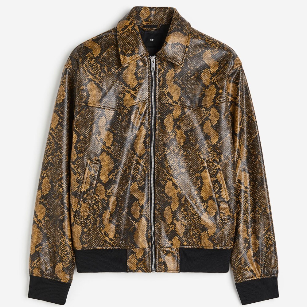 Куртка H&M Slim Fit Coated Snakeskin-patterned, коричневый