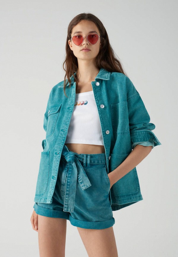 Куртка Pull&Bear. Цвет: бирюзовый. Сезон: Осень-зима 2019/2020.