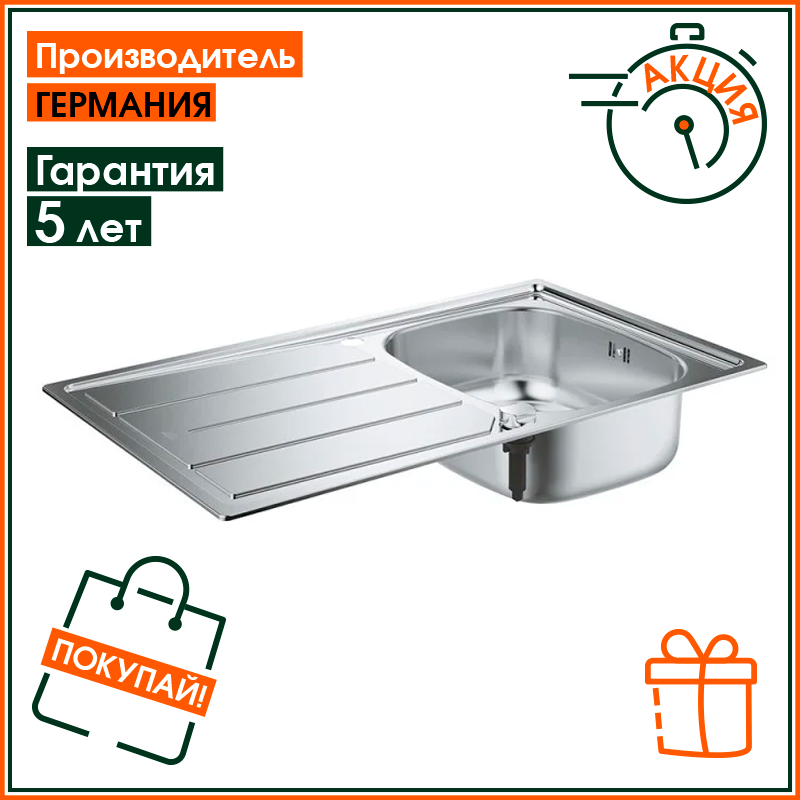 [html]Кухонная мойка Grohe Sink 31552SD0 изготовлена из нержавеющей стали, что гарантирует ее надежность и привлекательность поверхности. Благодаря системе GROHE QuickFix установка мойки не займет много времени и не потребует дополнительного оборудования. Мойка выполнена с рабочей чашей с отверстием слив-перелив, отверстием под смеситель и крылом для сушки посуды или разморозки продуктов. Изоляция GROHE Whisper на нижней части мойки уменьшает шум, есть автоматический мусоросборочный фильтр.[/html]