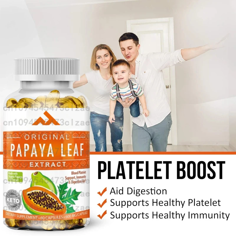 Экстракт листьев папайи, пищевой фермент, 60, вегетарианские капсулы, кровавая пластина, заруда костей и надежная поддержка иммунитета кишечника