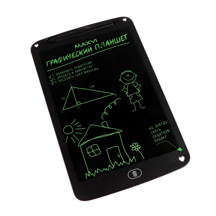 Графический планшет для рисования и заметок LCD Maxvi MGT-03, 12”, угол 160°, CR2016, черный