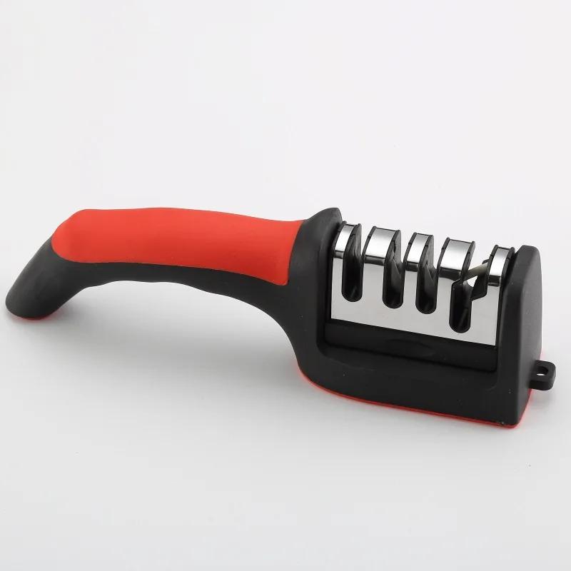 Кухонная 3-сегментная точилка для ножей, бытовая многофункциональная ручная трехцелевая черная точильный камень 6.5x21cm