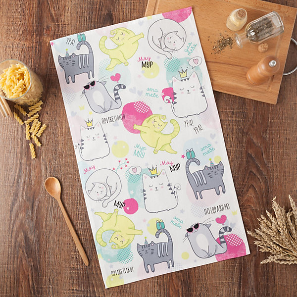Кухонное полотенце Этель "Котики", 35х60 см, Розовый, Кухонное полотенце Этель "Котики", 35х60 см