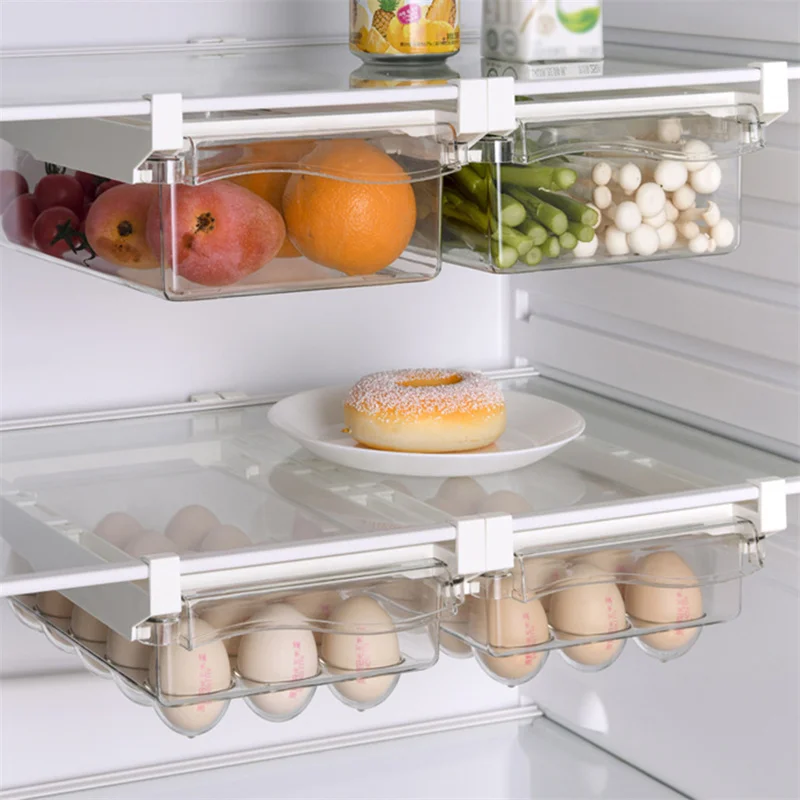 Кухонный Контейнер для хранения фруктов, пластиковая прозрачная фотография, слайд под полкой, ящик, стойка, держатель, ящик холодильника