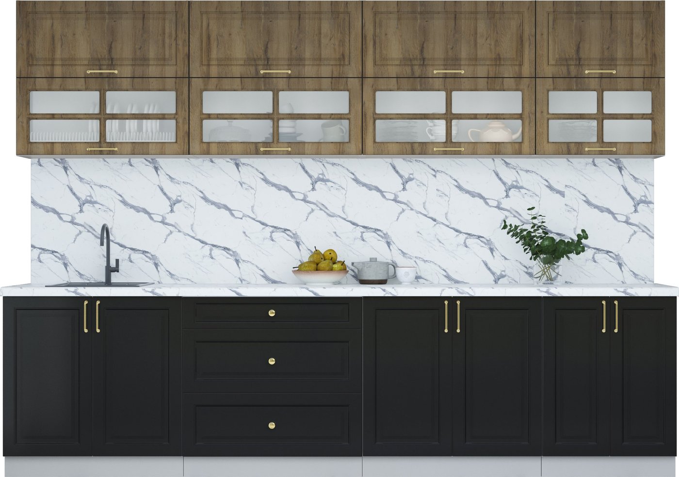 Кухонный модуль Интерлиния Мила Шато 3.0Б (дуб вотан/черный/белый гранит)