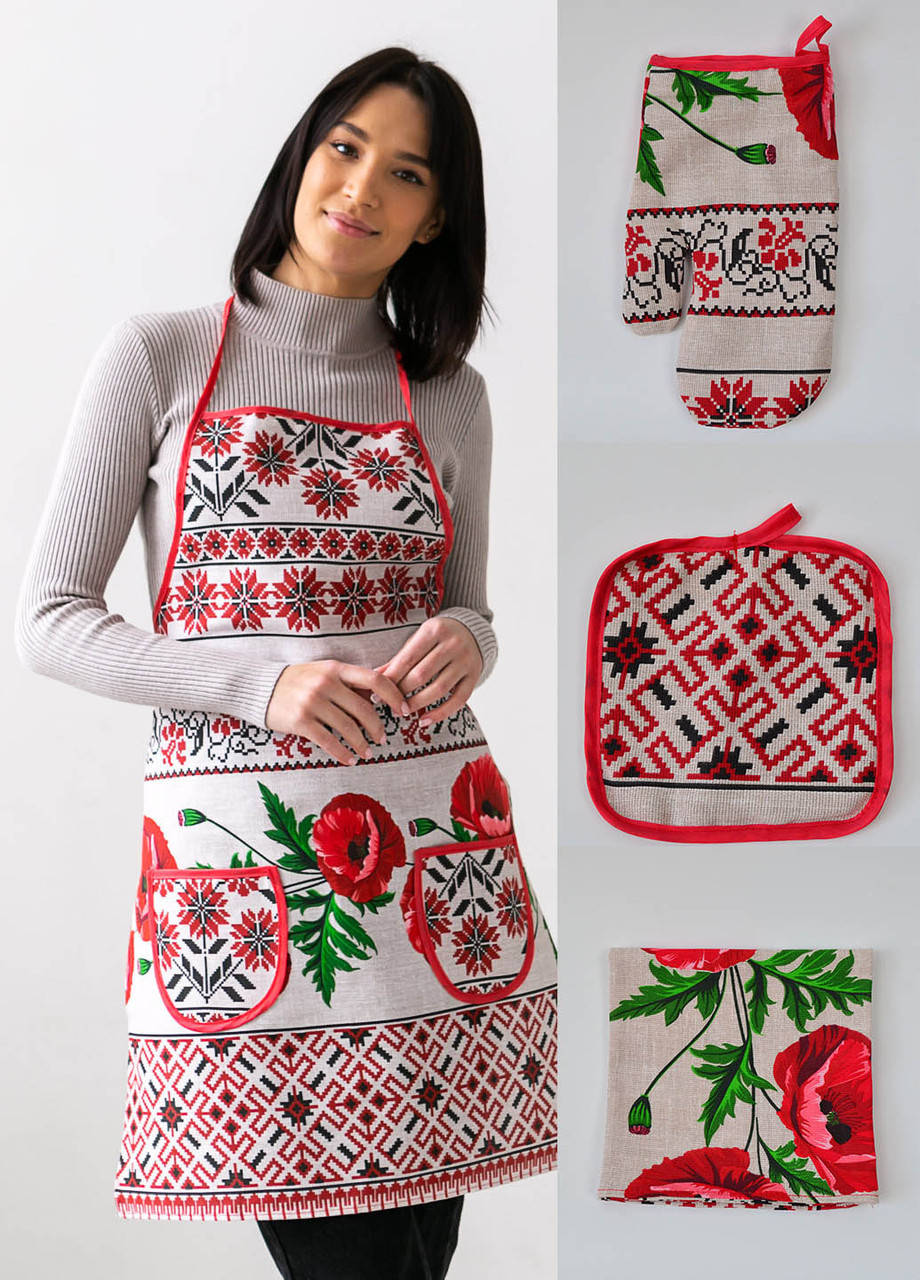 Набор кухонный - отличный выбор для настоящей хозяюшки. Все составляющее набора выполнены из приятного на ощупь материала хорошо впитывающего влагу. Кухонный набор гарантирует безопасное приготовление пищи, и выступает частью кухонного интерьера. Изготовлен набор из хлопка. Цветовая гамма изделий разнообразна, хорошо подойдет к любому интерьеру.