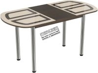 кухонный стол, прямоугольная, раздвижной, 1100x700 мм, высота 750 мм, в разложенном виде 1500x700x750 мм, материал: стекло/ЛДСП (столешница), окрашенная сталь (опоры), коричневый/бежевый